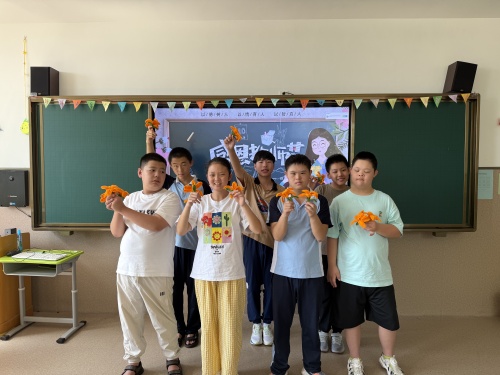 9月10日是一年一度的教師節(jié),今天同學(xué)們?cè)缭鐏淼浇淌业却o老師們送上教師節(jié)的第一份祝?!欢涠湎蜿柣?。這一朵朵漂亮的花朵是繪畫與手工課上老師帶領(lǐng)同學(xué)們做出來的。看同學(xué)們那一張張認(rèn)真的臉龐,真惹人喜愛;那一顆顆懂得感恩的心更上讓老師們感到欣慰。